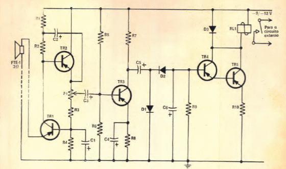 This circuit was found in Popular Electronics from 1969. The circuit uses a small speaker as a microphone. Modern equivalent transistors can be used.