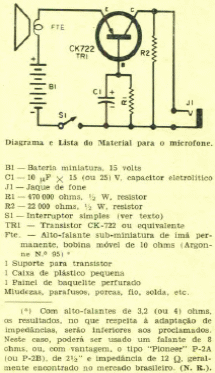 This small preamp for low impedance microphones was found in a Popular Electronics from November 1968. The transistor is in general use at the time.