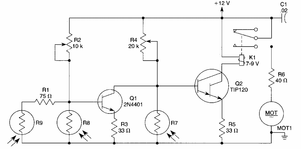 Found in Popular Electronics from the 90s, this circuit aims to drive a solar panel, constantly changing its position to follow the movement of the sun.