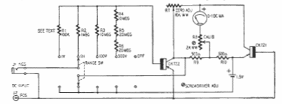 Found in an old Raytheon transistor manual, this 4-scale voltmeter has an accuracy that depends on the input resistor network.