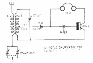 Found in a Raytheon circuit manual from the 1960s, this circuit uses the CK722 and a high-impedance headphone getting power from the captured signal itself. The second variable selects the station with the highest signal to obtain the feed.