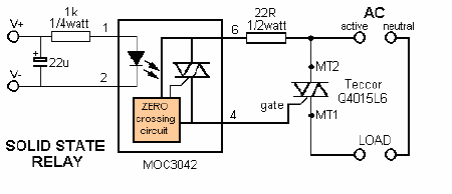Equivalent optocouplers can be used in this relay or solid-state shield. The power of the load depends on the triac used.