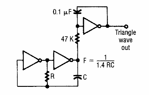 Taken from an Electronics Now from the 90s, this circuit generates signals whose frequency depends on R and C. The formula for calculation is given next to the diagram.