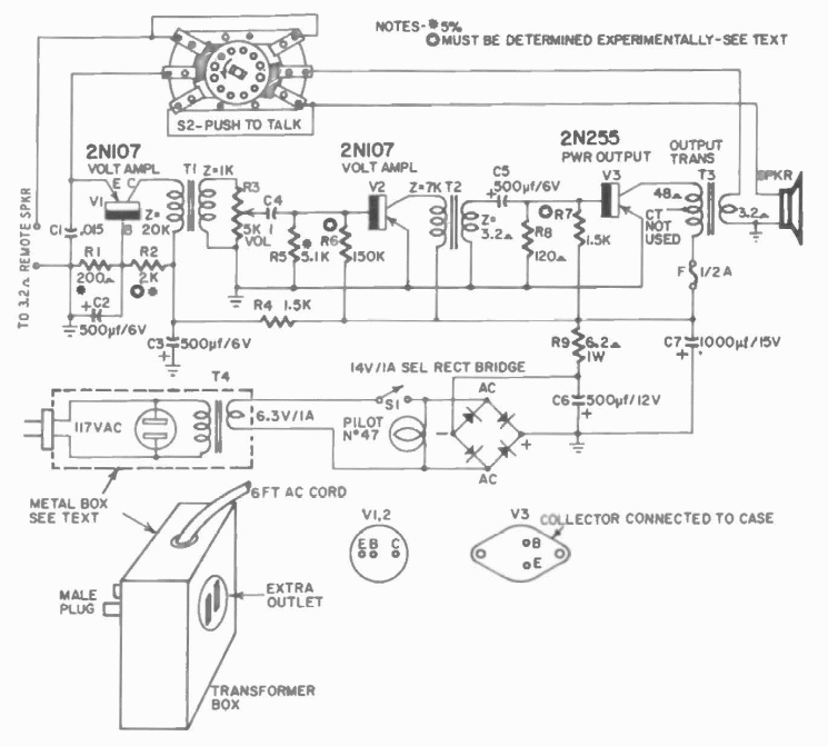 Today we can call this circuit a baby monitor. It is a microphone amplifier found in a publication by Hugo Gernsback from 1960.
