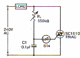 This circuit is valid for the 240 V network but can be changed for other networks. Potentiometer can be 470k common type. Triac depends on the controlled load.