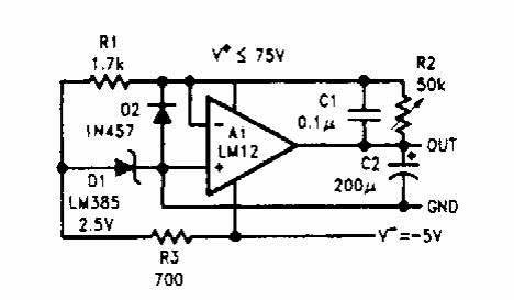This positive voltage regulator with 70 V output was found in a National Semiconductor manual from the 1980s. The maximum output current is 150 mA.