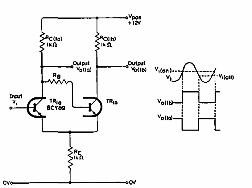 In the figure we have the way to use the transistors of an old-paired pair as a trigger circuit. The circuit is by Philips from an old documentation.