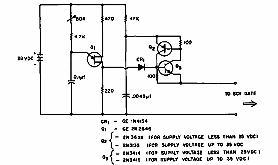 In this circuit we have the way to use two transistors as a regenerative pair simulating an SCR. The circuit is from a 1965 General Electric documentation.