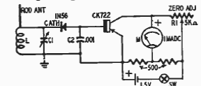 Found in a 1954 documentation, this circuit uses a germanium transistor from the time. The coil depends on the frequency range that is to be monitored.