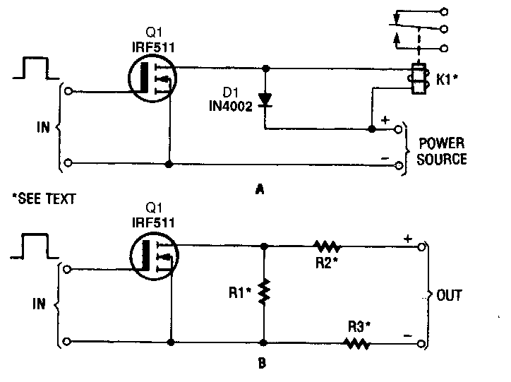 These are drive circuit using power MOSFETs. We found it in a Popular Electronics from the 90s.