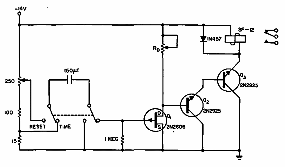Found in a 1965 Electronic Design, this circuit can be made with modern equivalent transistors. The capacitor basically determines time.