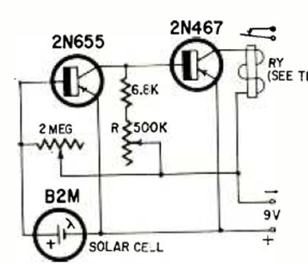 This circuit was found in a Radio Electronics from January 1965. The relay is 9V, but we can change the power supply to use 6 or 5V relays. Sensitivity is adjusted using the potentiometers.