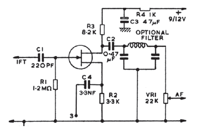Intended for SSB and CW reception, this circuit was found in old English documentation. The transistor can be any general purpose JFET.