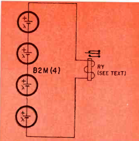 By connecting several photocells in series, we can directly activate a sensitive relay, as shown in the figure. The relay must have a trigger voltage equal to the sum of the voltages that the cells produce when connected in series.