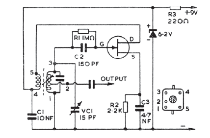 This oscillator for receiving SSB signals is intended for receivers with IF of 455 kHz. The circuit is from an English documentation and the coil is a common radio IF.