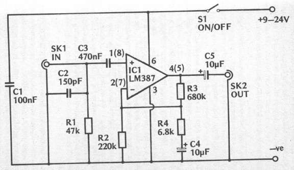 We found this circuit in an English documentation from 1989. The integrated circuit used is not very common nowadays. The circuit does not need a symmetric power supply.