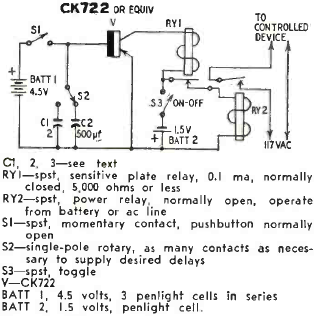 For times in the range of seconds to a few minutes we found this timer with the CK722 in a Radio Electronics magazine from September 1959.