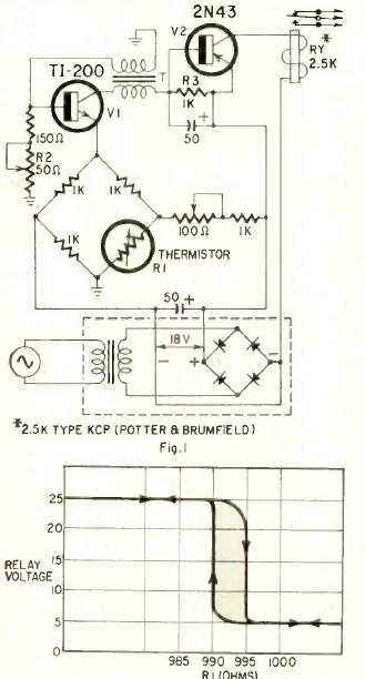 This two-transistor circuit uses an LDR as a sensor in a bridge configuration. The circuit is from a Radio Electronics from July 1961. Power comes from the power grid.