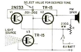 This simple circuit published in the November 1962 Radio Electronics magazine beeps when the light on the sensor is cut off. Transistors are from the time, as is the phototransistor.