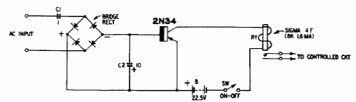 In this circuit from the 60s, the power supply is made with 22.5 V, which is the voltage of the relay. We can use modern versions of transistors and relays. The circuit is for AC.