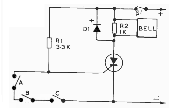 This is one of the many versions we have of this alarm on our website. It was found in an English documentation. R1 can be up to 100k for lower circuit consumption. The number of sensors can be increased.