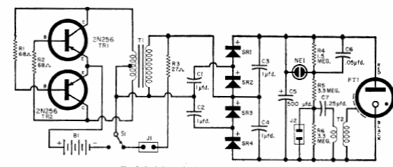 This circuit uses a special 1950's RCA strobe tube. It can be built with equivalent components for the rest of the circuit.