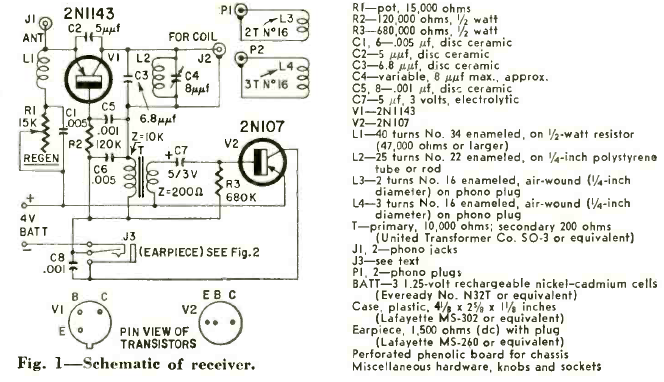This pocket-sized VHF receiver was found in Radio Electronics magazine from January 1961. It uses a transistor and tunes to the 11-meter band, considered VHF at the time.