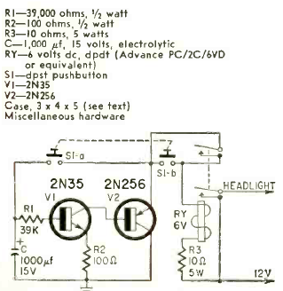 The purpose of this circuit is to turn off a lamp after a few seconds or minutes depending on the capacitor. The circuit is from a September 1961 Radio Electronics magazine.