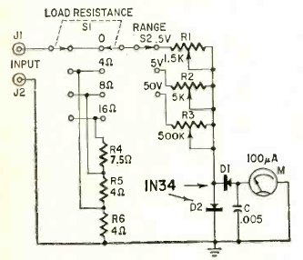 Using only passive components, this analog instrument circuit was published in the March 1962 Radio Electronics magazine. The galvanometer is 100 uA.