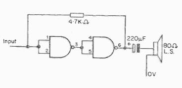 This simple TTL digital amplifier uses NAND gates and a high impedance speaker.