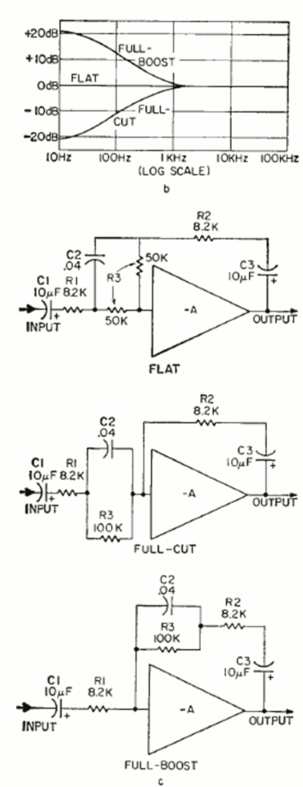 We found this circuit in the February 1970 issue of Radio Electronics Magazine. It uses an RCA operational amplifier released at the time. Note the curves obtained in each case.
