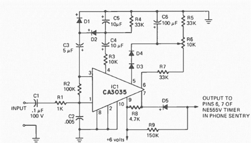 This old voice circuit suitable for telephones of the time was found in a Radio Electronics from September 1973. The circuit is powered by a voltage of 7 V.