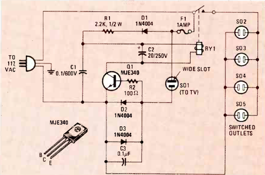 This automatic switch for multiple loads was shown in the May 1983 issue of Radio Electronics magazine. The circuit is designed to switch multiple electronic devices at the same time.