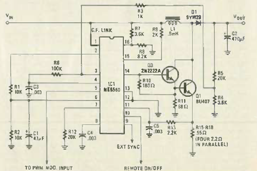 This switching boost regulator, which provides a 24 V output from a 12 V input, was found in the February 1980 issue of Radio Electronics magazine. The power transistor must be provided with a heat sink.