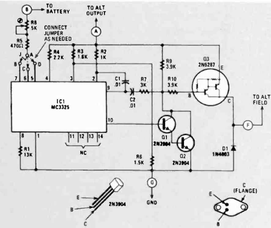 This circuit was found in the June 1980 issue of Radio Electronics magazine. The circuit uses an integrated circuit from time, and a power Darlington that must be equipped with a heat sink.