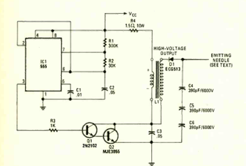 This simple circuit uses a car ignition coil. The circuit appeared in the 1983 Radio Electronics Annual Edition. The circuit supports equivalent transistors.