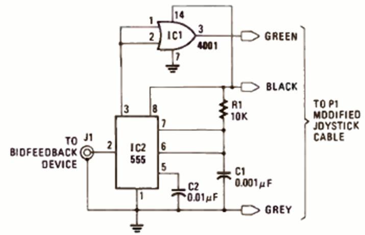 We have many versions of biofeedback with the 555 IC on this site. This is another one. We found it in October 1986 Radio Radio Electronics magazine. The power supply must be isolated.