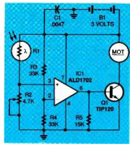 This is a very simple motor drive circuit with an LDR. The circuit simply powers a small motor. We found it in Electronics Now, January 1997.