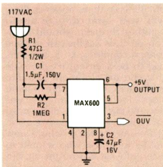 This circuit for powering TTL and even modern microcontrollers is from February 1987, Radio Electronics magazine. It is based on an integrated circuit from that time.