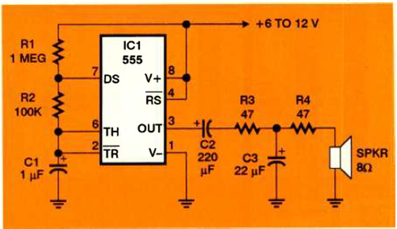 This circuit mimics the heartbeat with the softest sound played through a small speaker. The circuit is from an Electronics Now issue of January 1997.