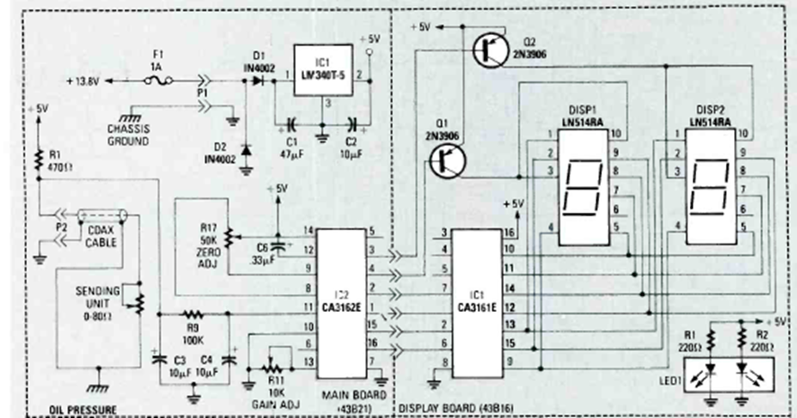 Using a sensor from the time, this circuit was found in the 1992 Radio Electronics Handbook magazine. The circuit uses a pair of integrated two-digit A/D converters.