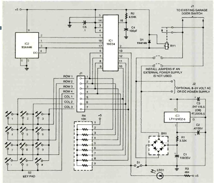 We found this code switch circuit in the January 1999 Electronics Now magazine. Some of the components are integrated circuits from that era.