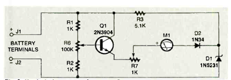This circuit was found in the March 1997 Electronics Now magazine. It uses a common analog indicator and the transistor is a general purpose one.