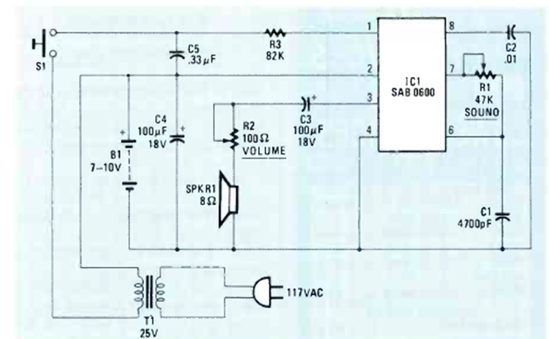 This circuit was found in the April 1984 issue of Radio Electronics magazine. The integrated circuit used is a type of time that already includes the power supply.