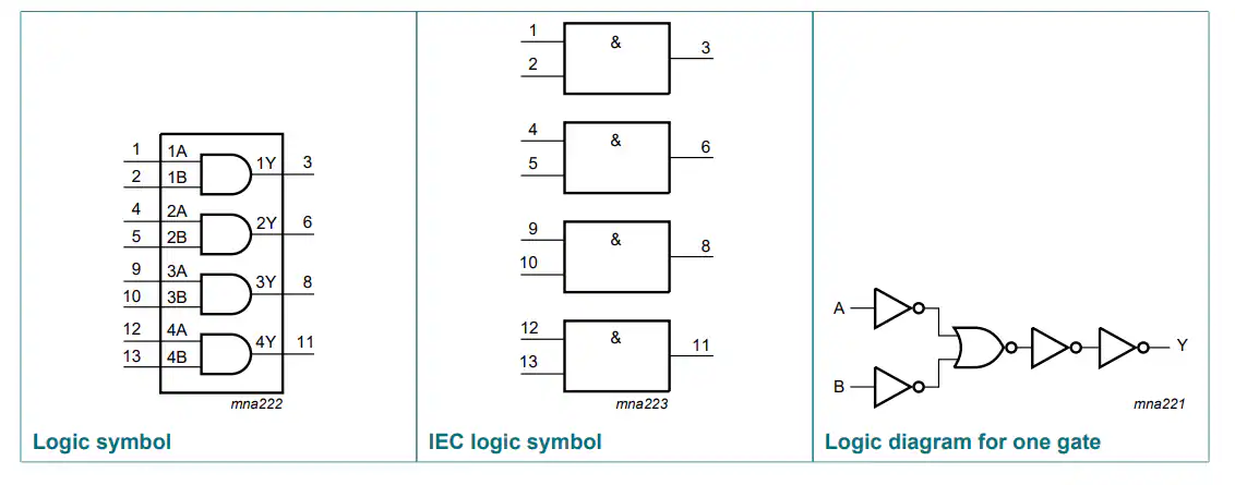 Nexperia 74LVC08A Quad 2-Input AND Gate drives inputs from either 3.3V or 5V devices. This characteristic enables the use of these devices as translators in mixed 3.3V and 5V applications. The Nexperia 74LVC08A Schmitt-trigger action at all inputs handles the circuit's slower rise and fall times.