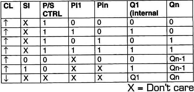 When the P/S input is “’l ” data is jammed into each stage synchronously with the positive transition of the clock. (See the truth table for more details.)