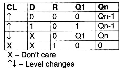 The logic level in the input of each stage is transferred to the output of the same stage with the positive transition of the clock.