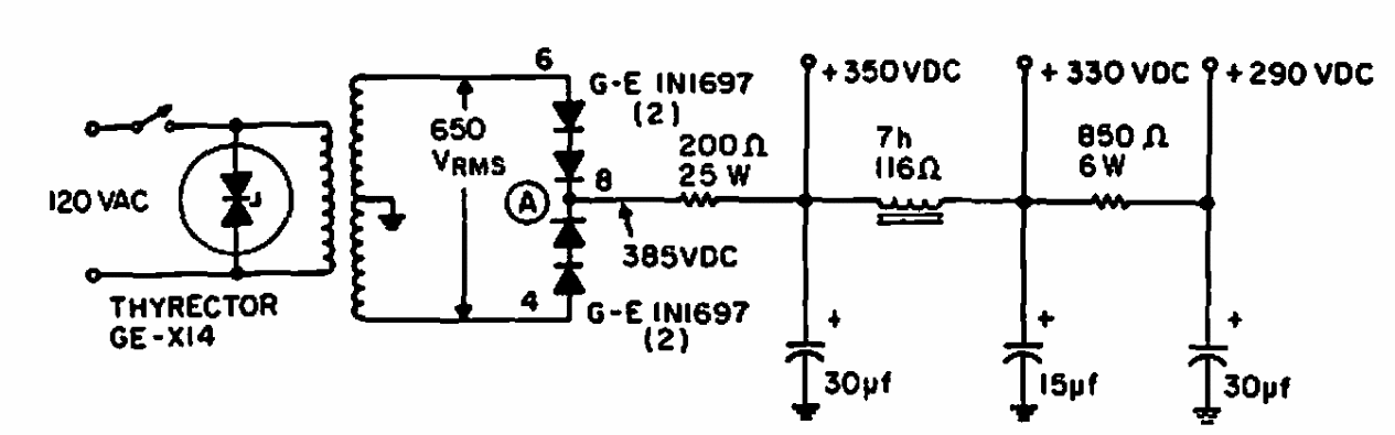 This circuit is from a high voltage tube source. It does not include the filament voltage that must be supplied by a separate transformer.