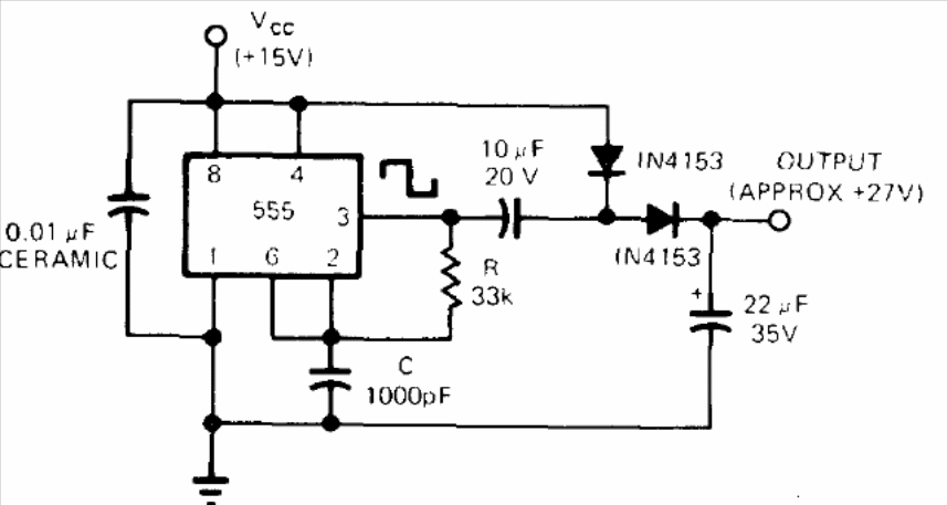 This circuit is a switched DC / DC converter that converts +15 V and +27 V with a maximum current in the order of 80 mA. The circuit is from a 1973 publication, and the diodes may be 1N4148. The circuit operates at 20 kHz.