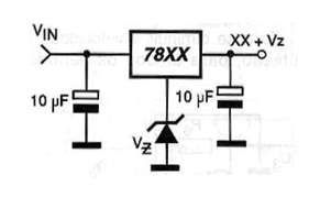 You can change the output voltage of a fixed 3-terminal regulator using a zener diode. The voltage of the zener diode will be added to the voltage of the regulator in order to obtain a voltage of XX + Vz at the output, where XX is the voltage of the regulator, for example 6 V to 7806 (78XX), and Vz is the voltage of the zener diode. A voltage of 7.5 V can be obtained with a zener of 1.5 V. The input voltage must be at least 2 V greater than the output voltage and must not be greater than 28 V above this value. The circuit is shown in the figure.